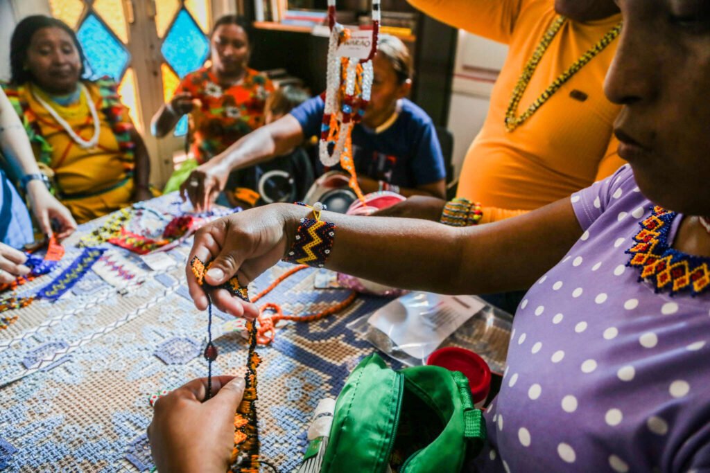 O evento destaca a produção artesanal de povos indígenas como Anacé, Pitaguary e Jenipapo-Kanindé, com peças feitas a partir de sementes, cascas, penas e fios, além de técnicas tradicionais de trançado e bijuterias. As artesãs também comercializam os produtos e compartilham saberes culturais.