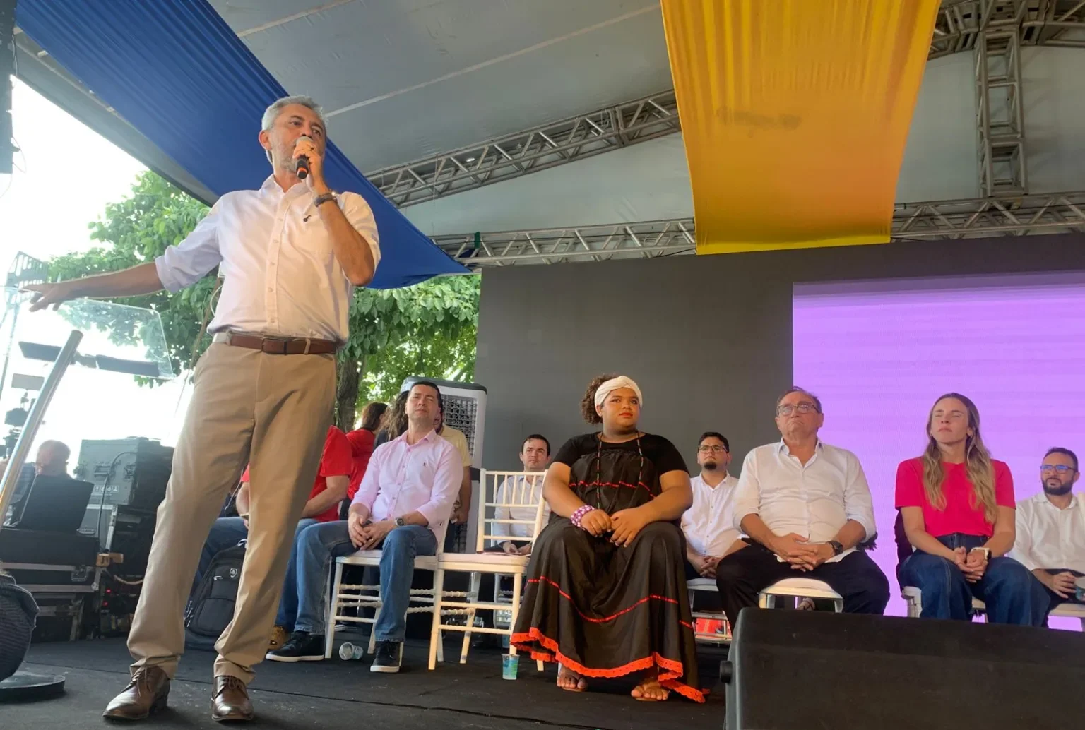 A vice-governadora Jade Romero (PT), o deputado federal José Airton (PT), o deputado estadual Tin Gomes (PSB) e o vice-líder do governo na Câmara Municipal de Fortaleza (CMFOR), vereador Aglaylson (PT), entre outras autoridades, participaram do evento, o lançamento do mutirão Governo do Brasil na Rua, que acontece no Cuca do Pici até esta sexta-feira (17).