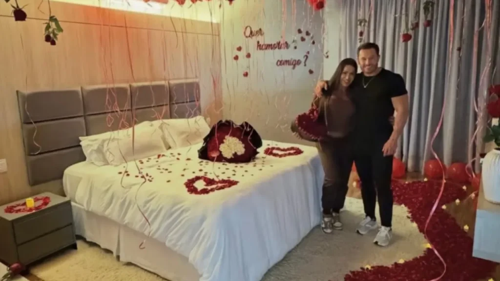 Gracyanne Barbosa, 42, influenciadora e ex-BBB, foi pedida em namoro por Gabriel Cardoso, 35, em uma surpresa cuidadosamente planejada pelo empresário, com flores, pétalas espalhadas pelo chão e velas compondo o cenário.