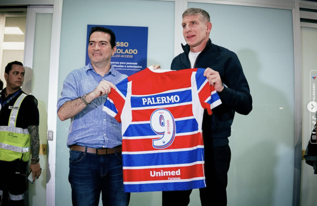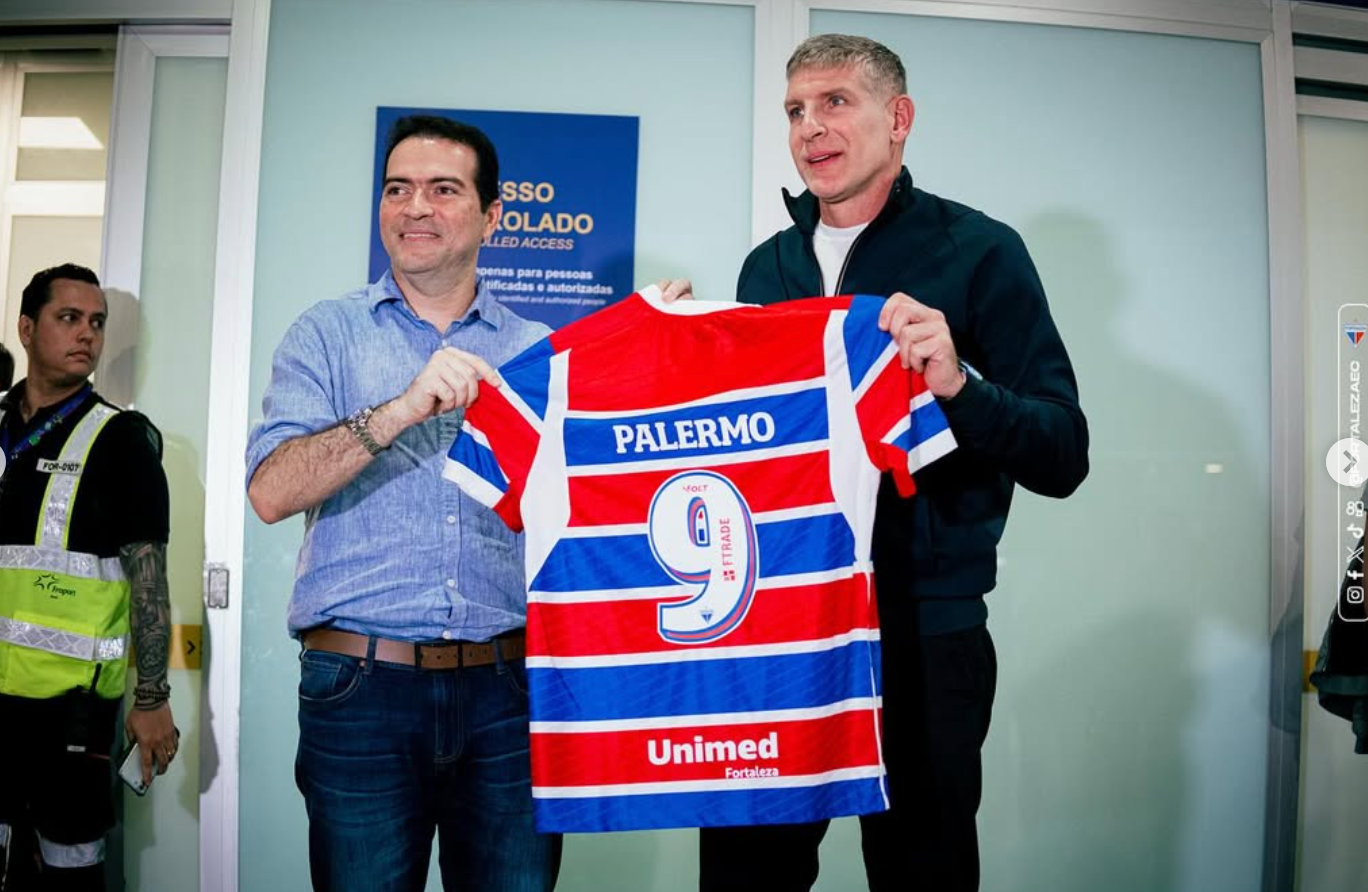 O novo comandante do Fortaleza, Martín Palermo, chegou a capital cearense nesta sexta-feira (5). O desembarque aconteceu no Aeroporto Internacional Pinto Martins, onde o treinador argentino de 51 anos falou rapidamente com a imprensa antes de iniciar os trabalhos no clube.