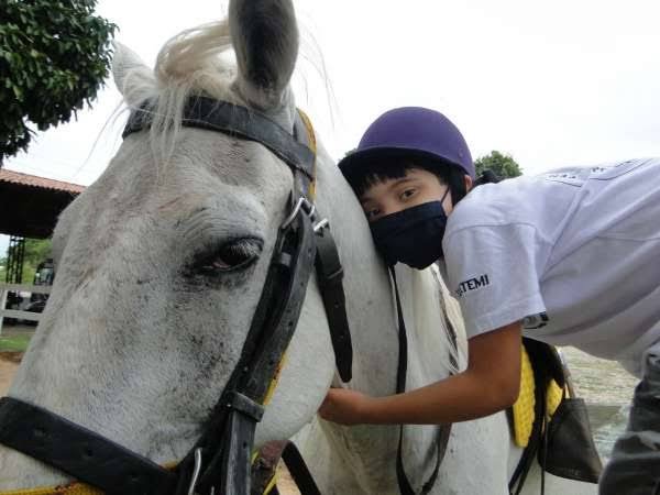 O fisioterapeuta explica, ainda, sobre o vínculo entre a criança e o animal. “A duração da cada sessão de equoterapia tem um tempo médio de 30 minutos. Vale ressaltar que não é uma terapêutica que tem como característica apenas a montaria, mas também envolve a condução do animal, o preparo de alimentos, o banho, a escovação do cavalo, atividades que têm como foco a aproximação e vinculação entre a criança e o animal”, finaliza.